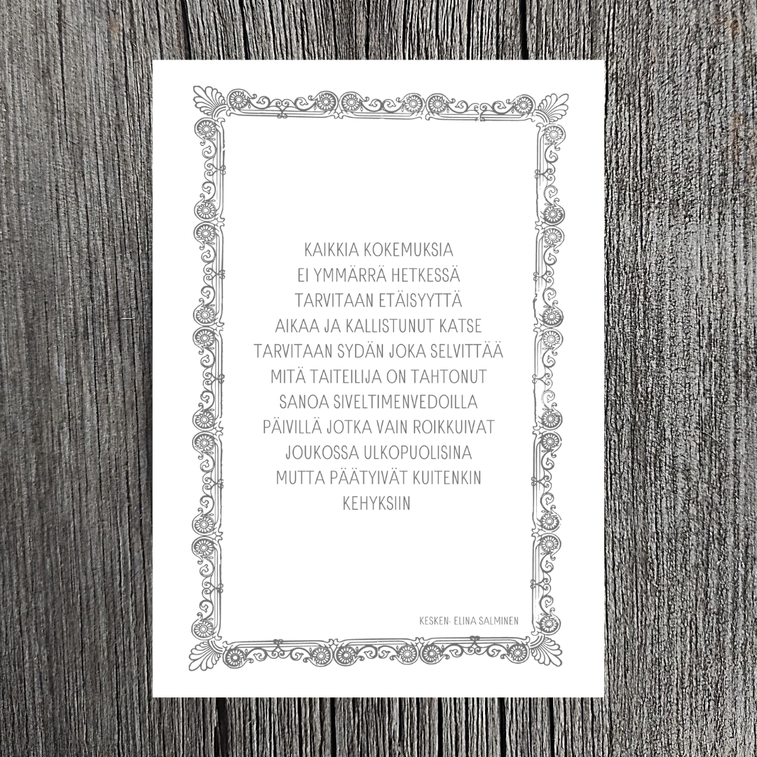 Kortissa on Kesken -runoilija Elina Salmisen runo.
