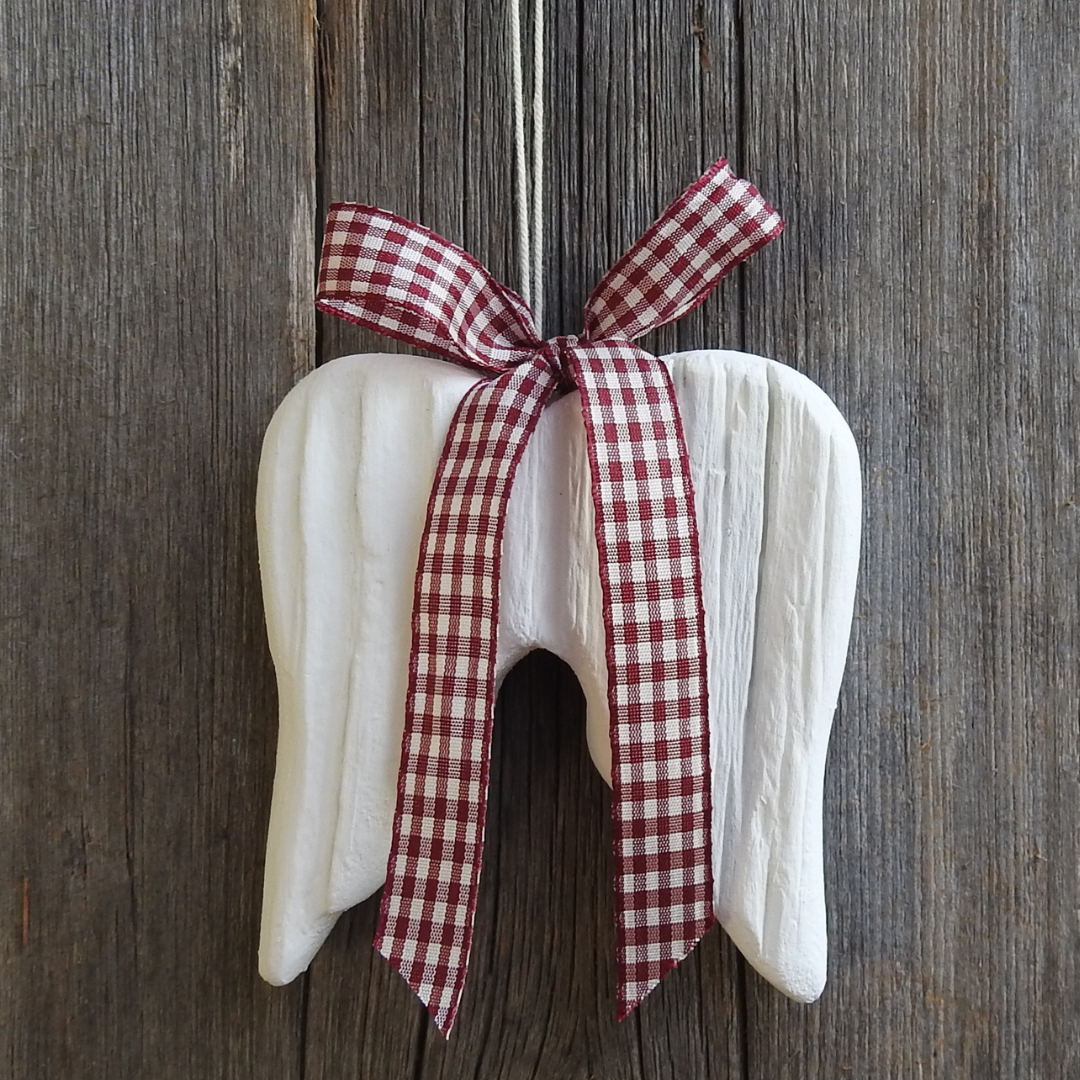 Siipien korkeus on 9,5 cm, leveys n. 9 cm ja paksuus n. 2,5 cm. Nauha on solmittu kiinni ripustusrenkaaseen, ja sen saa halutessaan pois.